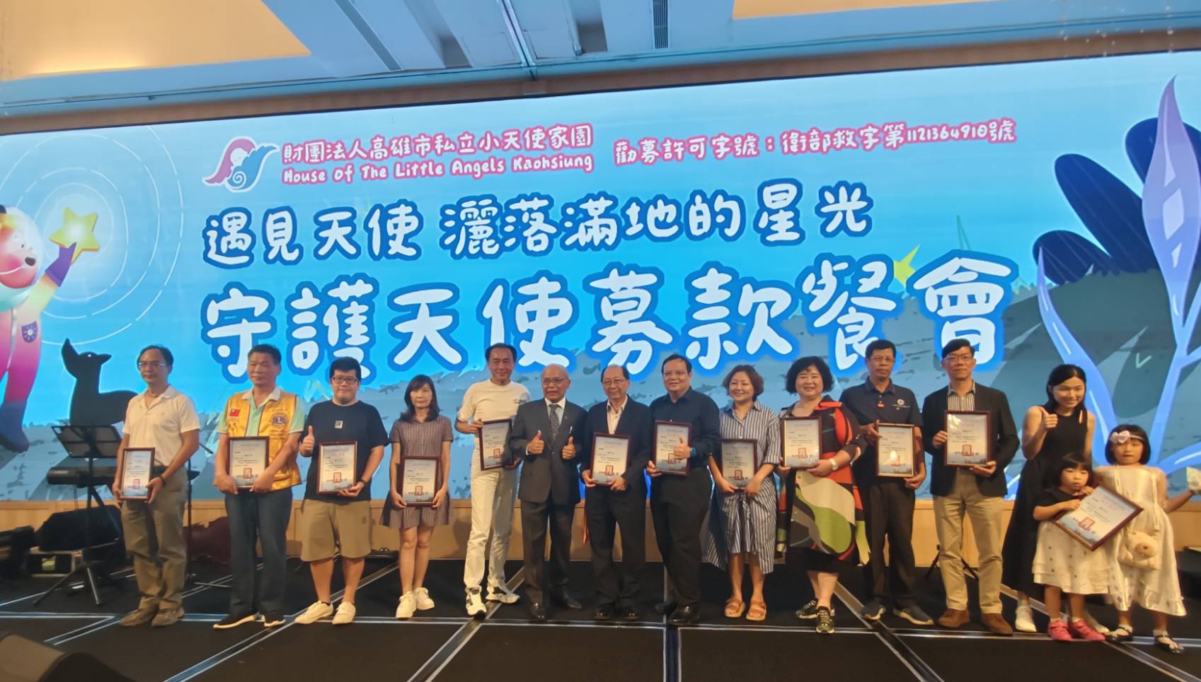 高雄市私立小天使家園於 9 月 21 日在漢來巨蛋會館 9 樓龍鳳廳,盛大舉辦「遇見天使,灑落滿地星光」十五週年暨 114 年守護天使募款餐會。現場席開 120 桌,星光閃爍,社會各界企業、公益團體與愛心人士齊聚一堂,共同為弱勢兒少點亮生命的星光大道。