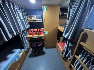例如,在船上設計上就有寢室高度必須達到 190 公分、床鋪寬 70 公分、長度 190 公分等規範,確保船員在長期海上作業時也有足夠活動空間與舒適度。船上還配備醫療室、網路通訊、生活用品及安全救護裝置,並設置視訊診療與直升機緊急接護方案,力求在海上就能照顧船員身心健康。