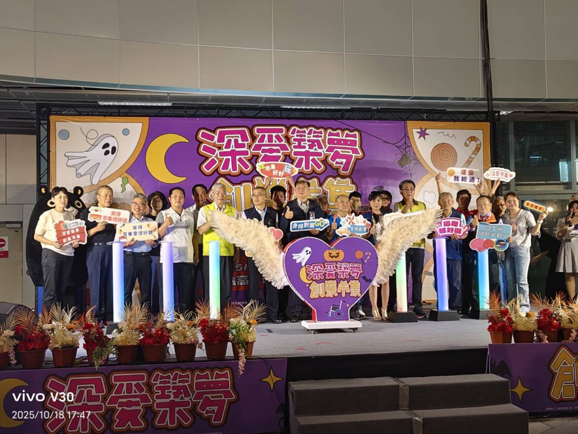 高雄市勞工局為支持身心障礙者創業,今年陸續規劃舉辦多場身心障礙創業市集活動,最終壓軸場於(18)日下午,在台鐵高雄火車站地下一樓南側廣場盛大登場,除有身障朋友、社福團體所帶來的各式特色美食與文創攤位外,現場也安排幼兒萬聖節走秀、AirPods耳機摸彩活動、親子闖關體驗、動物園聯名手作皮件限量好禮、身障團體表演等多項免費好康活動可以參加與觀賞,吸引許多市民朋友大手牽小手到場熱情支持。現場由歡喜表演藝術團、崇光樂團、知星樂團及小百合樂團多組身障表演團體輪番演出,晚間主題表演更邀請國際知名十鼓擊樂團、星空鋼琴手李尚軒、視障歌手朱禹豪、滯留島舞蹈劇團帶來高水準的主題音樂會表演,讓民眾在逛市集的同時,也能共享盛大的音樂饗宴。