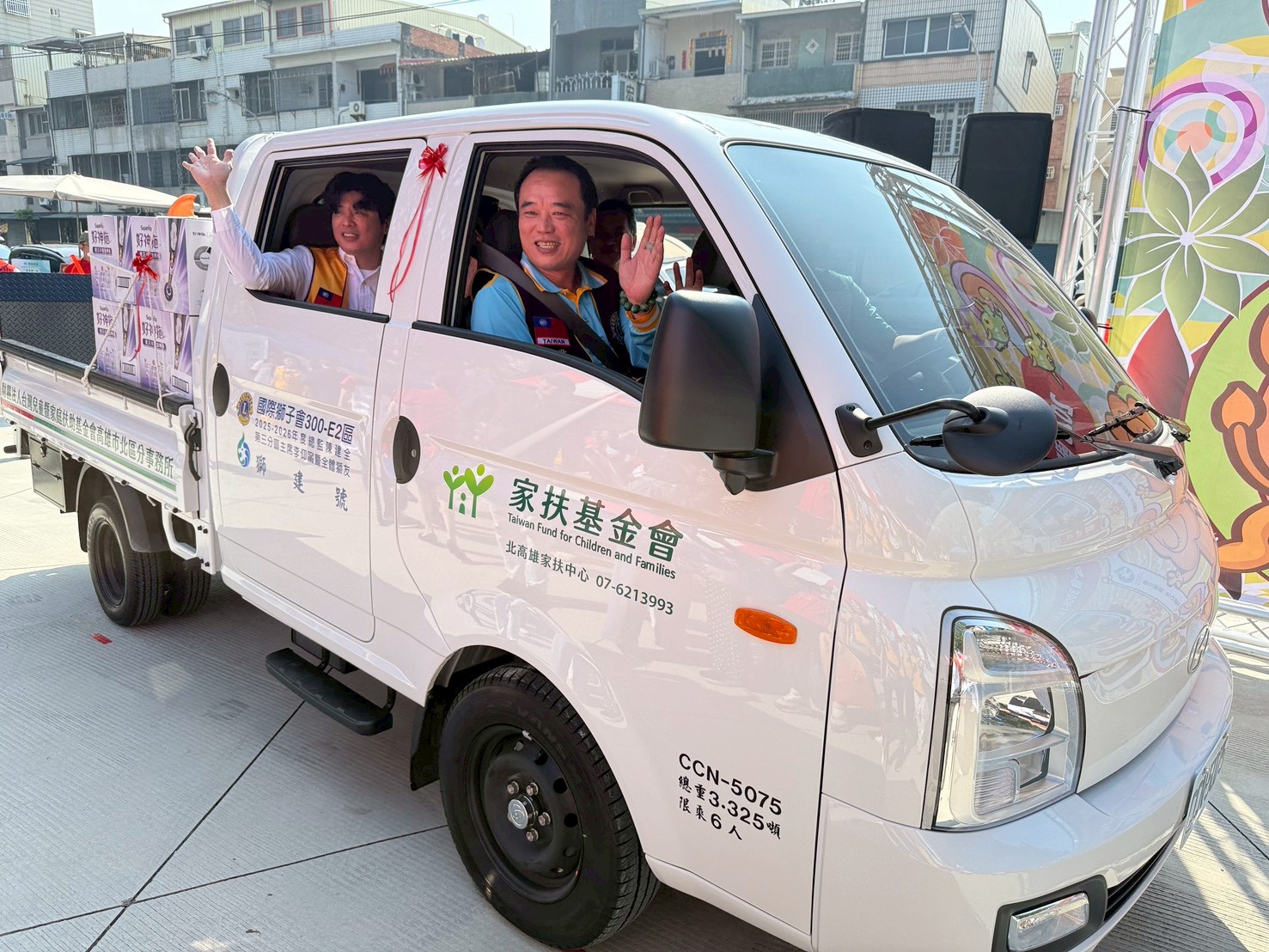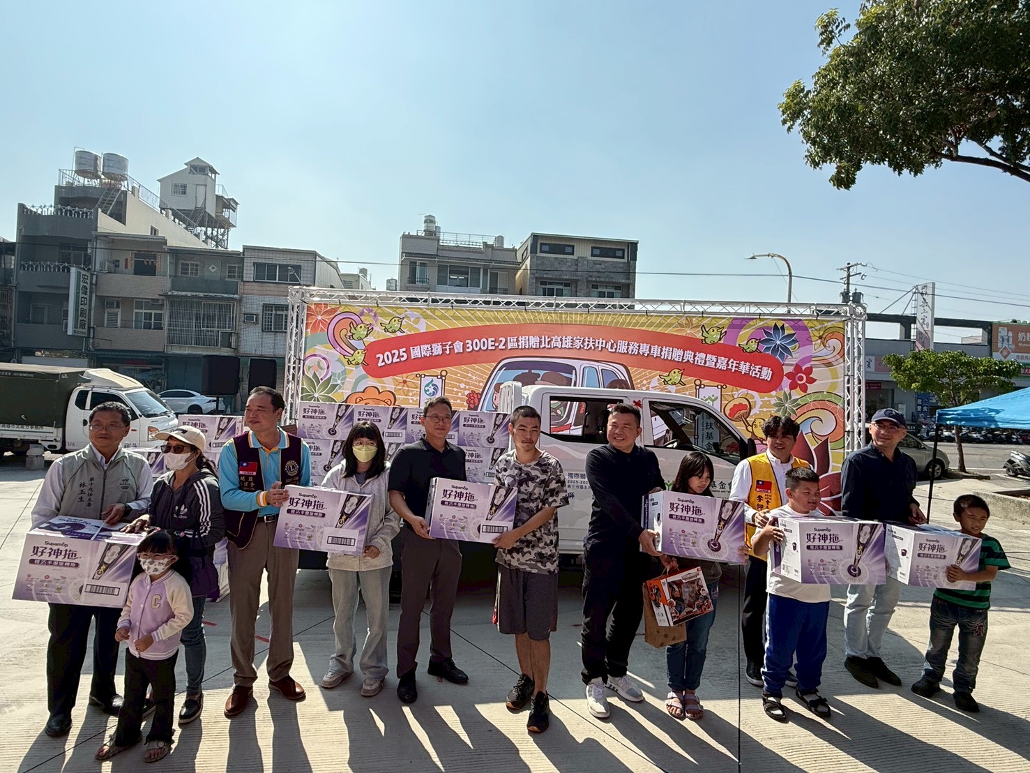 【記者 林進中 周志杰/高雄報導】北高雄家扶中心深耕原高雄縣27個鄉鎮已38年,守護無數弱勢家庭度過生命的困境,逾14000名兒少成長自立,秉持著「哪裡有需要 家扶就在哪裡」的精神,從廣闊的山區到沿海地區、從北到南,無論路途多遠、環境多艱困,也從未停止服務的腳步。中心載運物資的需求高,加上偏鄉地區路途遙遠、路況不佳等狀況,增加運輸的負擔,國際獅子會300E-2區陳建全總監深感安全耐用的新車輛對中心推動扶幼工作的迫切需求,因此帶領獅友們捐贈服務專車「獅建號」,強化服務的可及性與便利性。中心於日前(11/22)六,岡山和平公園舉辦「北高雄家扶中心服務專車捐贈典禮暨嘉年華活動」,邀請社會大眾一同見證「獅建號」啟用,將愛傳遞給弱勢家庭。