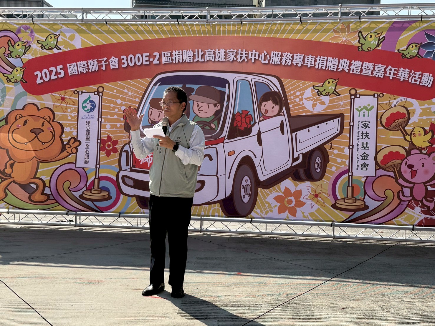 國際獅子會300E-2區陳建全總監與獅友們,致力於關懷兒童、青少年及弱勢族群,推動多項公益活動,本次捐贈「現代小霸王雙廂型貨車」作為服務專車,以實際行動落實聯合國永續發展目標的SDG1消除貧窮,陳建全總監表示:「我們看見北高雄家扶中心在偏鄉服務的用心,這台服務專車不只是交通工具,更是一份可以讓愛抵達的力量。我們期望透過實際行動,讓孩子們感受到社會的關懷與支持。」,除此之外,第三分區李仰甯主席亦號召親友捐贈30組好神拖予弱勢家庭,改善他們的生活需求,於捐贈典禮中拋磚引玉,希望有更多的人一起關注並加入扶幼行列,共創善的循環。