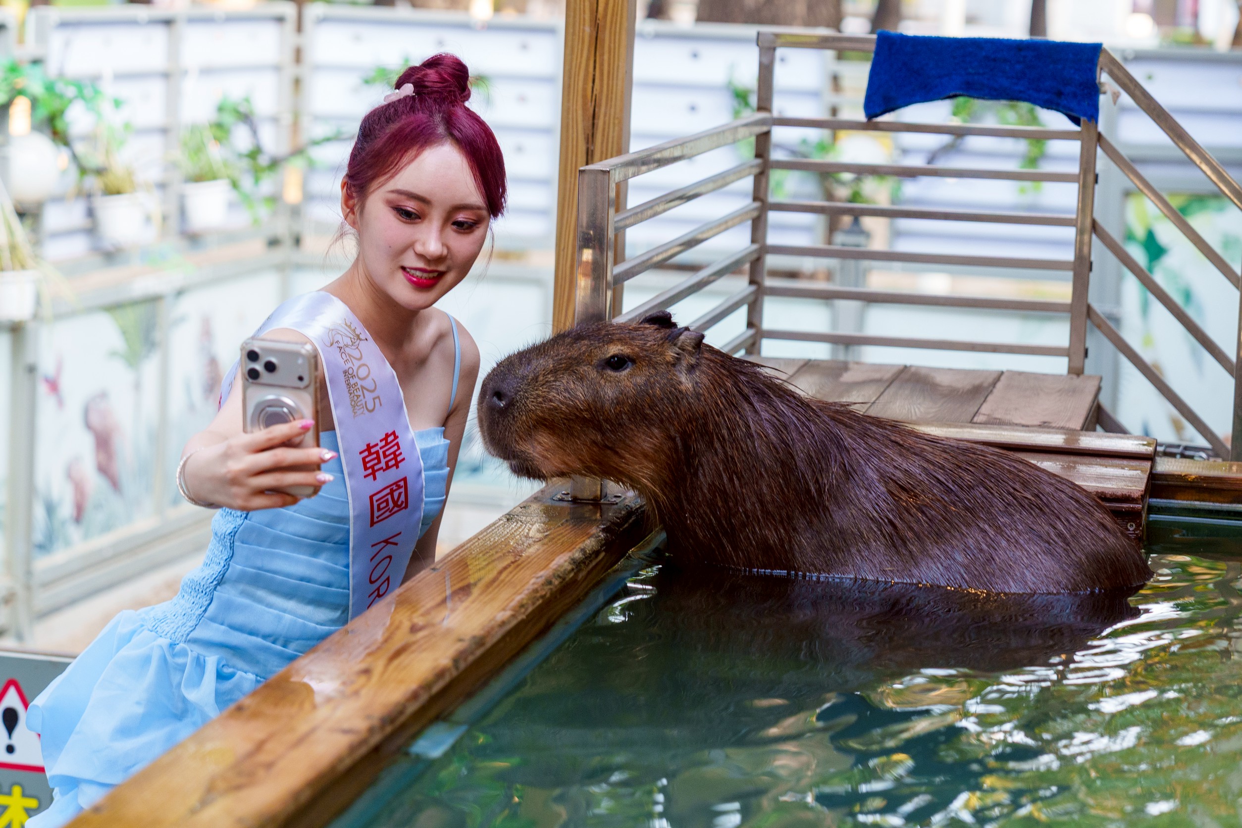 來自各國的佳麗一抵達園區,立刻被軟萌的水豚、靈活的狐獴、溫馴羊駝及多樣珍稀鳥類吸引,紛紛拿出手機拍照、錄影,並即時分享到 IG、TikTok 等社群平台,掀起國際轉發潮。