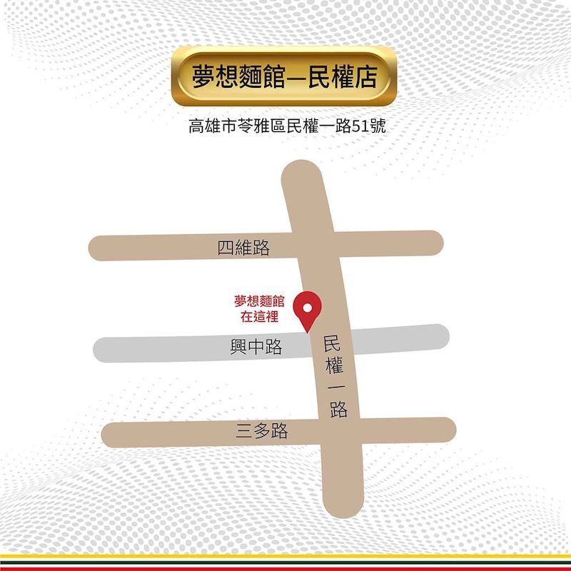 夢想麵館隸屬覓奇餐飲集團,由科技背景出身的團隊跨足餐飲產業,嘗試以系統化與自動化方式,解決餐飲業長期面臨的人力與品質穩定問題。繼高雄三民區十全一路首店營運成功後,團隊選址苓雅區民權一路再開分店,象徵品牌正式邁入擴點階段。